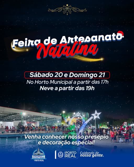 Feira de Artesanato Natalina no Horto Municipal! Prepare-se para o clima natalino nos dias 20 e 21, a partir das 17h. Venha conhecer nosso presépio, a decoração especial e se encantar com a neve a partir das 19h. #VemProHorto