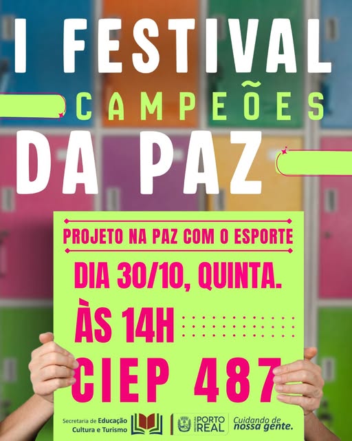 I Festival Campeões da Paz! Mais uma ação do projeto Na Paz com o Esporte, que promove integração, respeito e valores por meio da prática esportiva. Dia 30/10 (quinta-feira) Às 14h CIEP 487