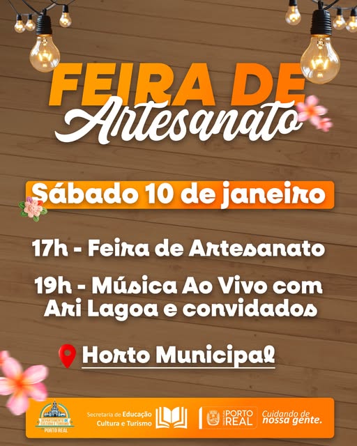 Prepare-se, avisa todo mundo que neste sábado dia 10 vai ter muita música, alegria, diversão e arte no Horto Municipal na Feira de Artesanato, é a valorização dos talentos locais. é um evento para toda a família. Não perca!