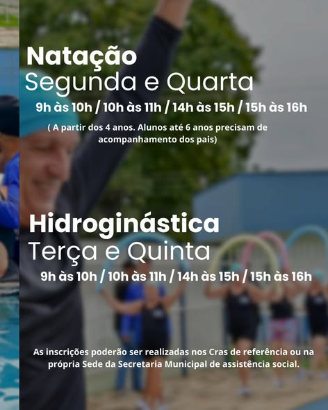 Você sabia que a natação e a hidroginástica ajudam no condicionamento físico, na mobilidade e no fortalecimento do músculo cardíaco? Isso mesmo, essas atividades fortalecem nossa saúde e melhoram o dia a dia. Não perca a oportunidade de cuidar do seu corpo!